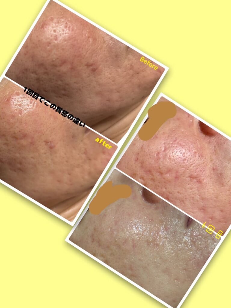 気になっていたニキビ跡や、鼻横のたるみ毛穴の影も薄くなってきて、肌のトーンも上がりました。