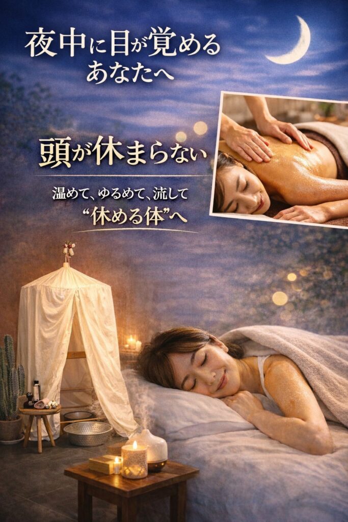 筋肉をほぐしながら、血行を良くし、リンパを流し、身体のバランスを整えながらオイルトリートメントをします。